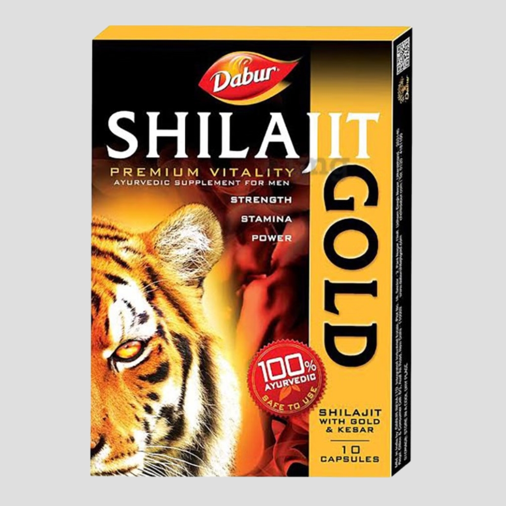 Shilajit Gold is a premium Ayurvedic supplement formulated to support strength, stamina, and power. It contains a blend of Shilajit, Gold, and Kesar, and comes in a convenient pack of 10 capsules.
